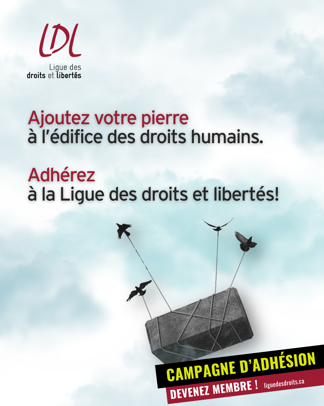Votre adhésion constitue pour la LDL un soutien financier et un soutien politique inestimable! Refusez avec nous tout recul car les droits et libertés sont universels, indissociables et interdépendants.